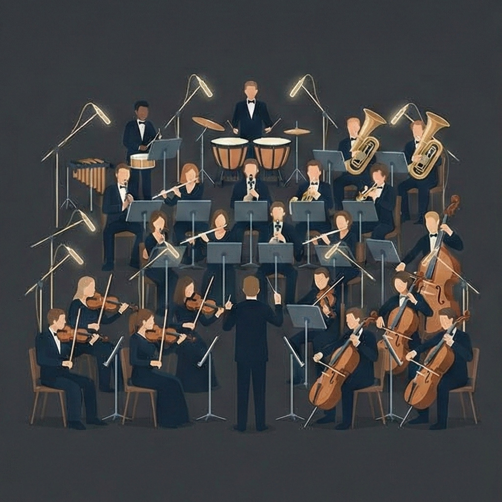 多チャンネル録音が必要な大編成や、緻密な音作りを求める現場へ。3名のスタッフ体制で、空気感まで緻密にパッケージします。