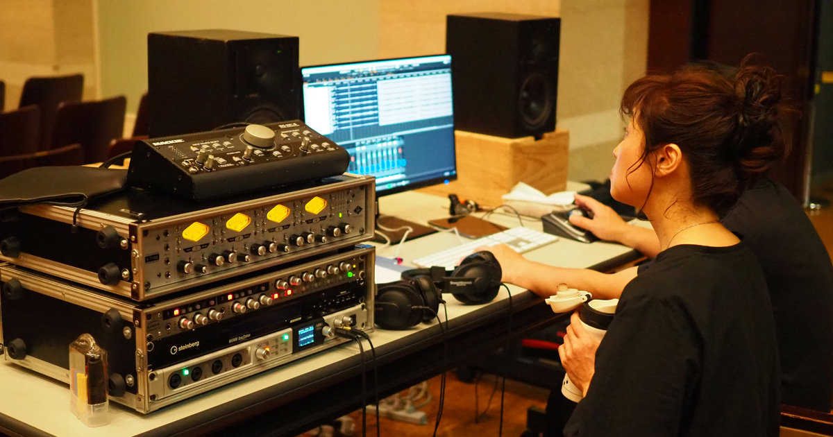 現場での波形編集やモニタリングもスタジオクオリティで実施し、クライアントが求める「企業の顔となる響き」がホールの豊かな残響と共鳴し、一つの作品として結実した手応えを感じています。